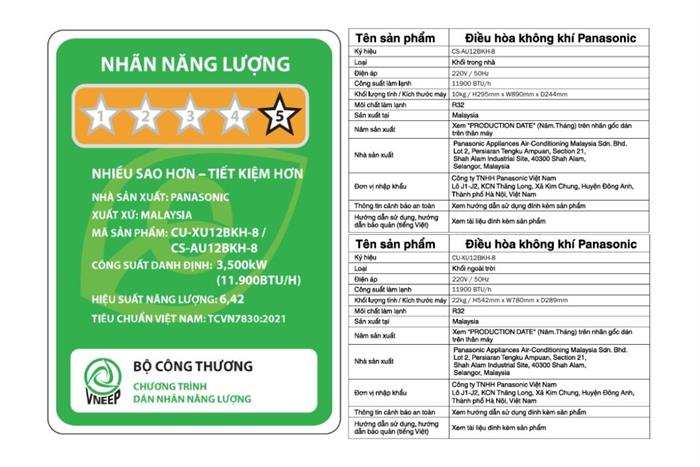 Máy lạnh Panasonic Inverter 1.5 HP CU/CS-AU12BKH-8